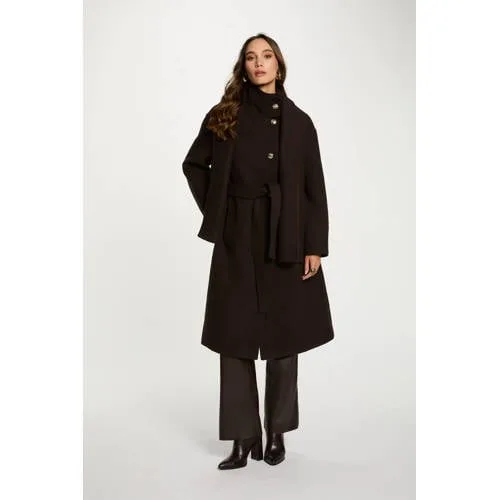 Deze mantel jas van Morgan heeft een knoopsluiting en een sjaalkraag. Deze jas is gemaakt voor de winter, de ceintuur zorgt voor een goede pasvorm.