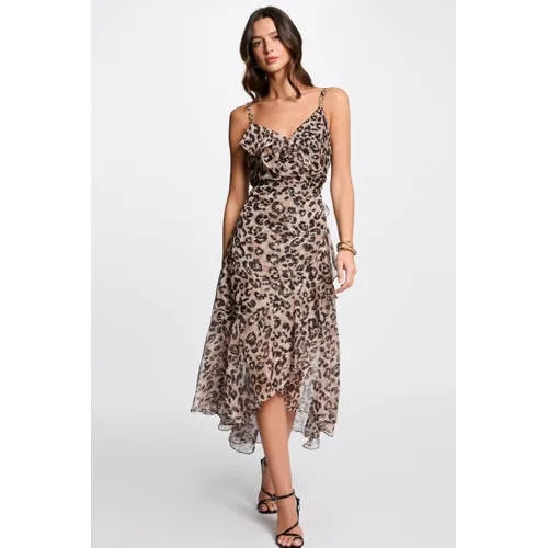 Deze jurk van Morgan heeft spaghettibandjes en een V-hals. De lengte valt tot halverwege het been. Gemaakt van polyester, ideaal voor warme dagen en makkelijk te combineren met je favoriete accessoires.