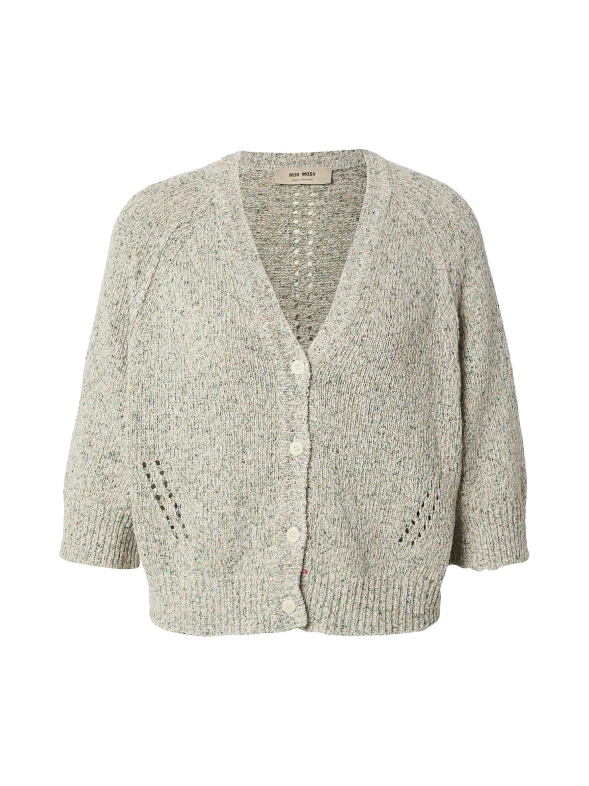Design: Geribbelde kraag, Knop placket, Geribd ceintuurtje; Type sluiting: Knoopsluiting; Materiaal: Knitwear; Halstype: V-hals; Motief: Mélange; Details: Mesh; Extra's: Fully fashioned, Voelt zacht aan; Pasvorm: Normale pasvorm; Armlengte: Driekwart mouw; Lengte: Normale lengte