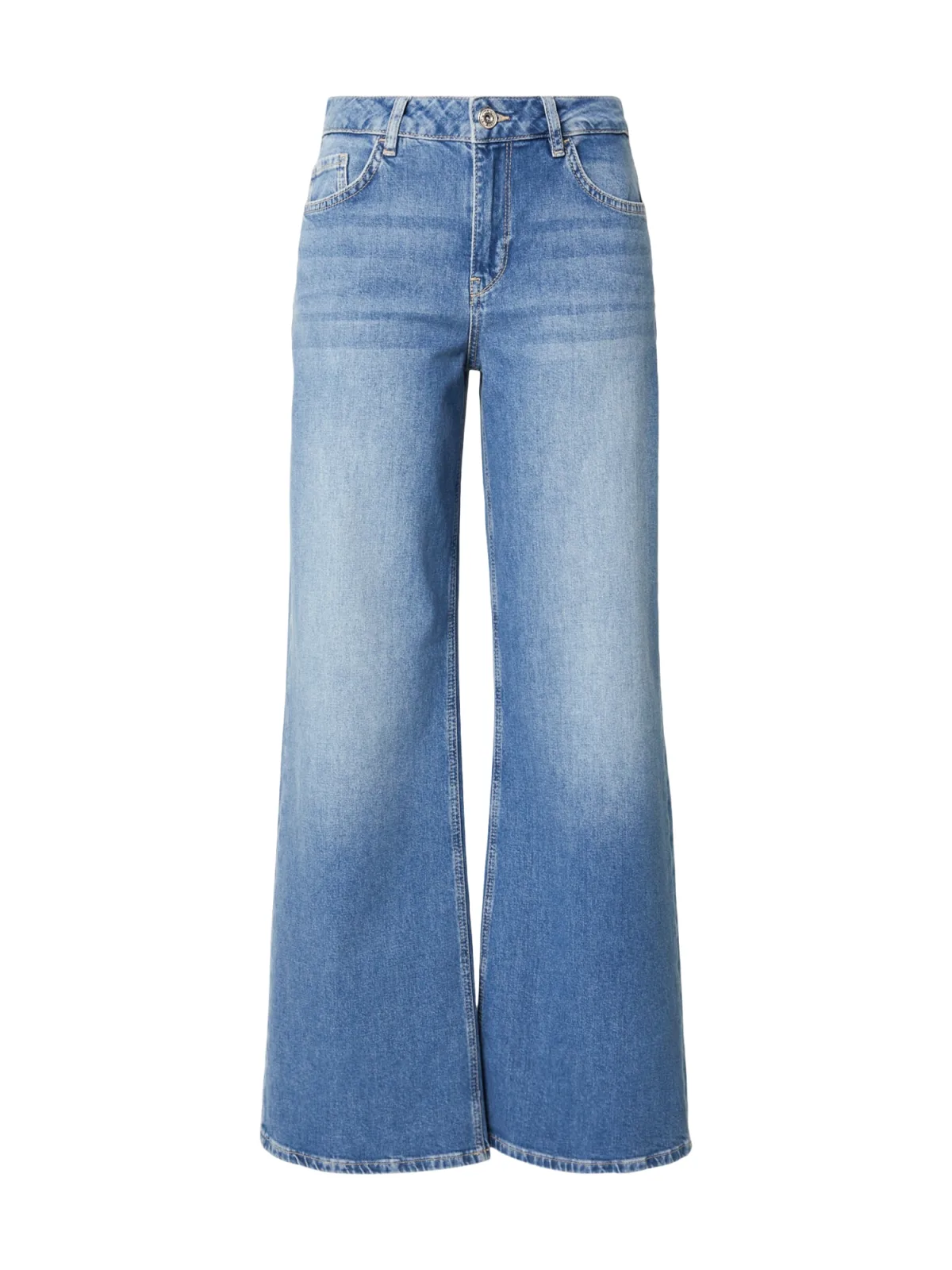Design: Gevoerde zoom/rand, Ritssluiting, 5-pocket-style; Type sluiting: Ritssluiting; Materiaal: Denim; Motief: Effen; Extra's: Contrasterende naden, Label patch/label flag, Vaste grip, Riemlussen; Wassing: Blauw denim; Lengte: Lang/maxi; Pasvorm: Flared; Taillehoogte: Mid waist
