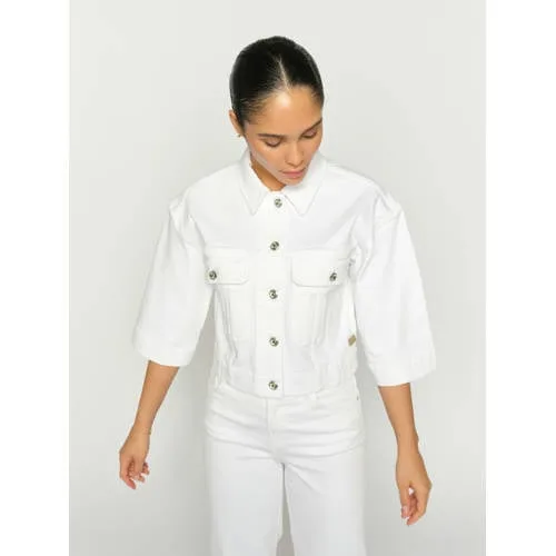 Fris, licht en toch stoer, deze ecru spijkerjas voor dames van Mos Mosh is een stijlvol laagje voor het tussenseizoen. Het korte model met half lange mouwen geeft een moderne twist aan de klassieke denim look. De ecru kleur oogt zacht en licht, ideaal voor de lente en voor dagen waarop je makkelijk wilt combineren.Details die je elke dag kunt dragen Kort model dat mooi valt op een hoge taille broek of rok Half lange, rechte mouwen voor een luchtig en eigentijds silhouet Klassieke kraag en effen design voor een rustige, veelzijdige uitstraling Zakken voor, handig voor kleine essentials en voor een relaxte look Gemaakt van een soepele, zachte denimachtige stof met lichte stretch voor bewegingsvrijheid Ecru tint met subtiel warme ondertoon, passend bij zachte lente- en zomerkleurenLuchtig laagje voor het tussenseizoenDeze jas is ideaal als luchtig extra laagje over een T-shirt, top of zomerjurk. In de ochtend draag je de jas dichtgeknoopt, later op de dag kan hij nonchalant open. De neutrale kleur maakt combineren met jeans, linnen broeken en prints eenvoudig.Mos Mosh: aandacht voor pasvorm en detailMos Mosh staat bekend om kleding met een moderne, vrouwelijke uitstraling en veel oog voor pasvorm. Materialen worden zorgvuldig gekozen voor een prettige feel en de afwerking is tot in de kleinste details uitgewerkt. Met deze jas kies je voor een betrouwbare basis in je garderobe die je seizoen na seizoen erbij pakt.Een licht en veelzijdig jasje dat je outfits op een subtiele manier compleet maakt.