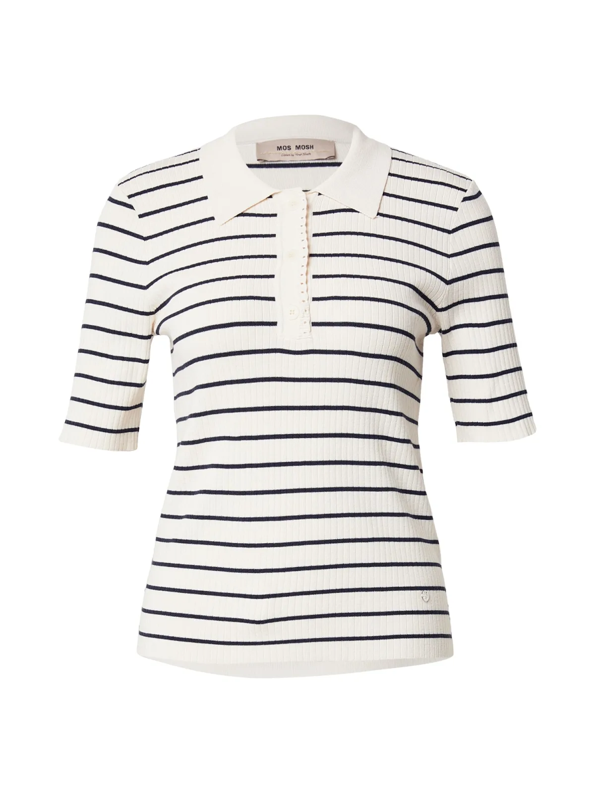 dames gebreid shirt van MOS MOSH;Viscosemix met zijdege;regular fit;Model 'Caliz';streepmotief;riblook;Polokraag;knoopsluiting;ruglengte bij maat S: 54 cm;mouwlengte bij maat S: 26 cm