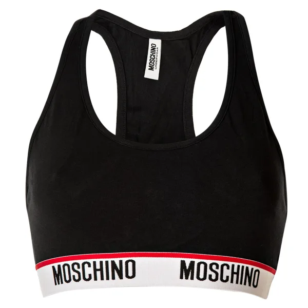 Lichte dames bustier van het merk MOSCHINO. Aangenaam zachte katoenkwaliteit. Zonder beugels en ongevuld. Onderband met MOSCHINO-logo.