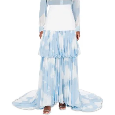 Moschino Long Skirt With In The Cloud Print Blue