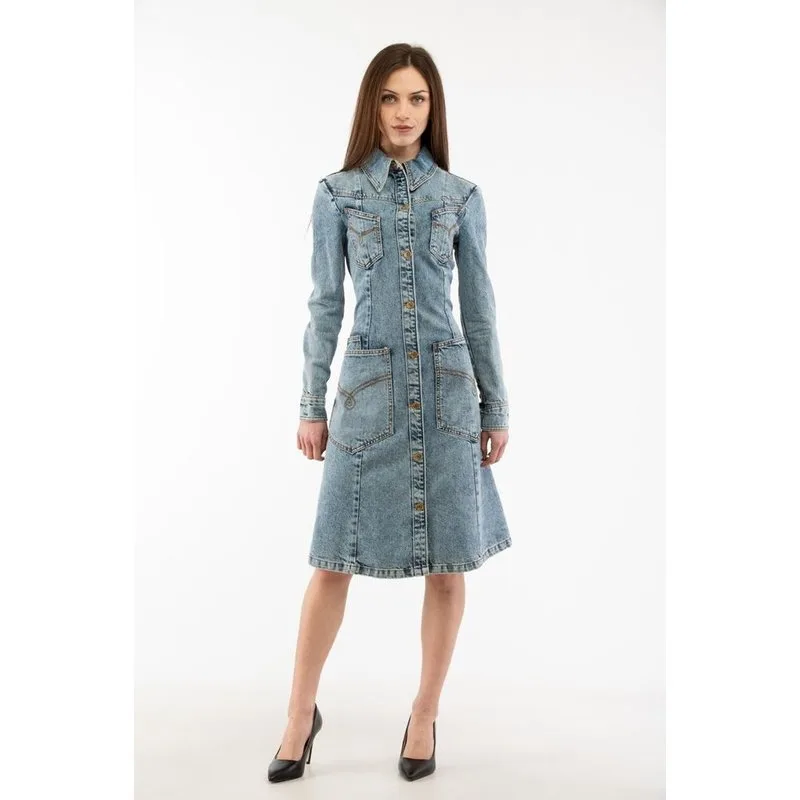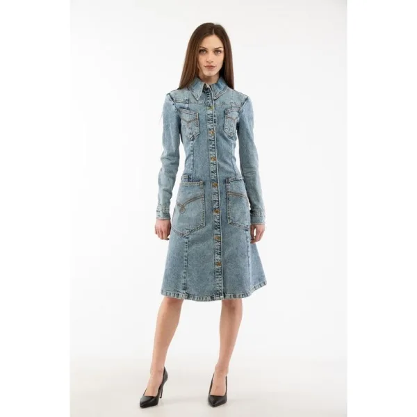 Verhoog je stijl met de vibrante multi-blauwe jurk van MOSCHINO, gemaakt van 100% katoen voor ultiem comfort. Materiaal: 100% Katoen Kleur: Multi Blauw