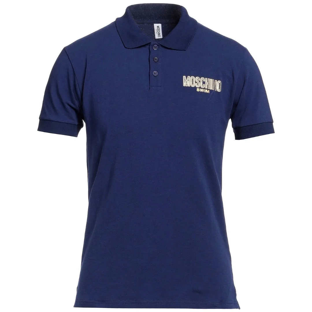 Moschino blauw poloshirt, merklogo op de linkerborst, 94% katoen 6% elastaan, klein logo op de borst, normale pasvorm, maat valt normaal, blauwe polo