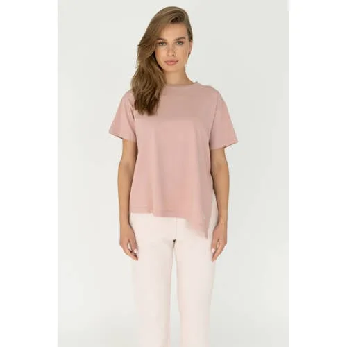 Fris, licht en klaar voor zonnige dagen, dit Moscow dames T-shirt van katoen is een praktische basic voor in jouw zomergarderobe. De zalmkleur geeft een zachte uitstraling, terwijl de rechte pasvorm en de middellange lengte zorgen voor een relaxed silhouet. Gemaakt van 100% katoen voelt het materiaal soepel en luchtig aan op de huid, ideaal voor warme dagen of als laagje onder een vest.Dagelijkse basic met doordachte details Zalmkleurig T-shirt met effen dessin voor een rustige uitstraling Gemaakt van 100% katoen voor een zachte touch en prettig draagcomfort Ronde hals en korte, rechte mouwen voor een klassieke T-shirtstijl Middellange lengte die mooi valt op een jeans, rok of korte broek Valt normaal volgens het maatadvies, kiezen van je gebruikelijke maat is voldoende Onderdeel van de Moscow Boutique collectie, passend bij een verzorgde, moderne stijl Eenvoudig in onderhoud, wasbaar op dertig graden en lauw strijkbaarVeelzijdig zomers shirtDit T-shirt draag je gemakkelijk op een lichtgekleurde jeans, een linnen broek of een luchtige rok. De effen zalmkleur laat zich goed combineren met neutrale tinten en zachte pastels, waardoor je snel een rustige, zomerse outfit creëert. Ook onder een open blouse of dun vest blijft het T-shirt subtiel aanwezig.Moscow: eigentijdse stijl met aandachtMoscow richt zich op kleding met een moderne, vrouwelijke uitstraling en comfortabele pasvormen. De collecties worden ontworpen met aandacht voor draaggemak en kleuren die je garderobe eenvoudig aanvullen. Met dit T-shirt haal je een praktisch basisitem in huis dat je vaak zult dragen.Een luchtige basic die je moeiteloos combineert in jouw dagelijkse looks.