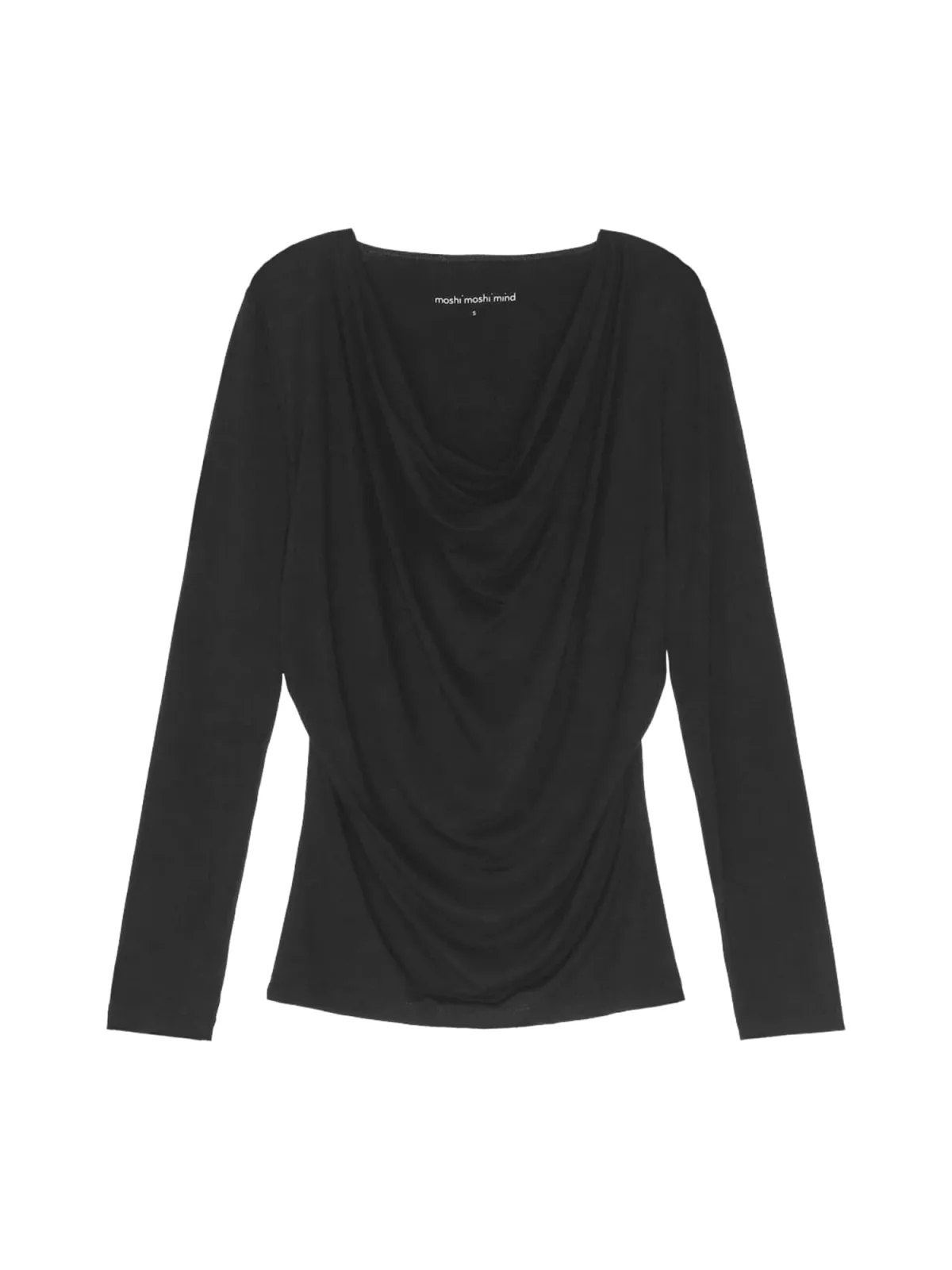Design: Gevoerde zoom/rand; Materiaal: Jersey; Halstype: Watervalhals; Motief: Effen; Details: Gedrapeerd; Extra's: Voelt zacht aan; Lengte: Lang/maxi; Pasvorm: Normale pasvorm; Armlengte: Lange mouw; Pasvorm: Regular; Lengte: Normale lengte