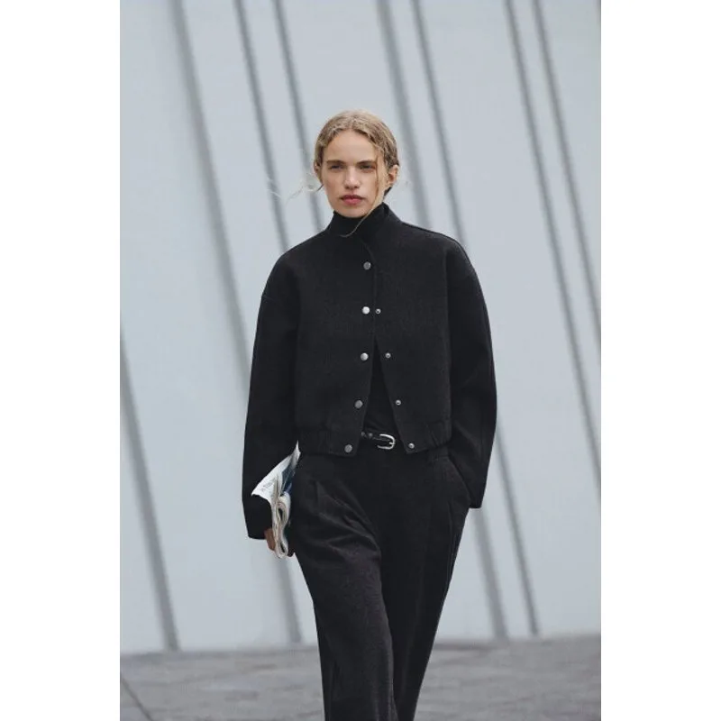 Maak kennis met Seba een herfstwollen bomberjack. Het jasje heeft een elastische zoom, drukknopen en een kraag in mandarin-stijl. Het is een perfect binnenjasje, als alternatief voor een blazer, of als buitenjas in deze overgangsmaanden.Kleur: dgm Materiaal: 70% Recycled Polyester & 30% Recycled Wool Normale pasvorm