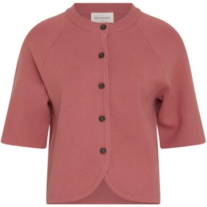 Gebreid vest met een ronde hals en een volledige knoopsluiting aan de voorkant. Ontworpen met raglanmouwen en ribboorden bij de hals, manchetten en zoom. Lichtgewicht en zachte breikwaliteit met een gelijkmatige structuur. ModelmaatHet model is 177 cm lang en draagt maat S/M. PasvormNormale pasvorm. MouwlengteKorte mouwen. MouwtypeRaglanmouwen. SluitingKnoopsluiting aan de voorkant.Kleur: faded rose Materiaal: 48% viscose, 27% polyester & 25% polyamide