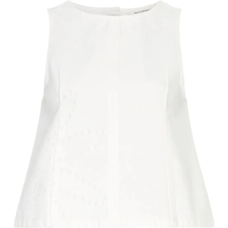 De Top Dexter SL van MSCH Copenhagen is een minimalistische dames top mouwloos met een ronde halslijn en knopen aan de achterkant. Het effen ontwerp biedt veelzijdigheid, terwijl het merk subtiel in de nek is verwerkt, wat zorgt voor een stijlvolle uitstraling.