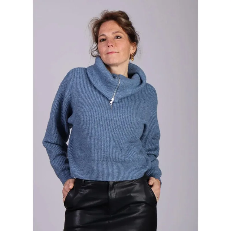 Lichtblauwe gebreide trui met halve rits Gyetta MSCH Copenhagen