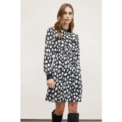 Motivi Beauty Patterned Dress With Sequin Collar Black Prijzen