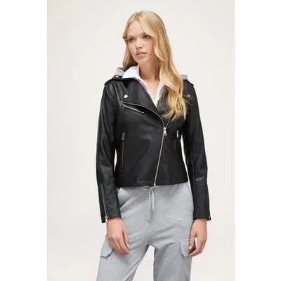 Motivi Biker Jacket With Fleece Hood Black Prijzen