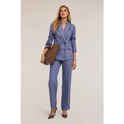 Motivi Double-breasted Cotton Canvas Blazer Light Blue Prijzen