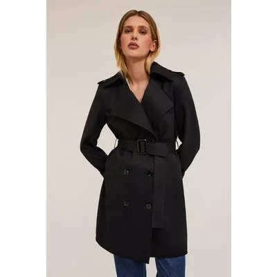 Motivi Double-breasted Technical Fabric Trench-coat Black Prijzen