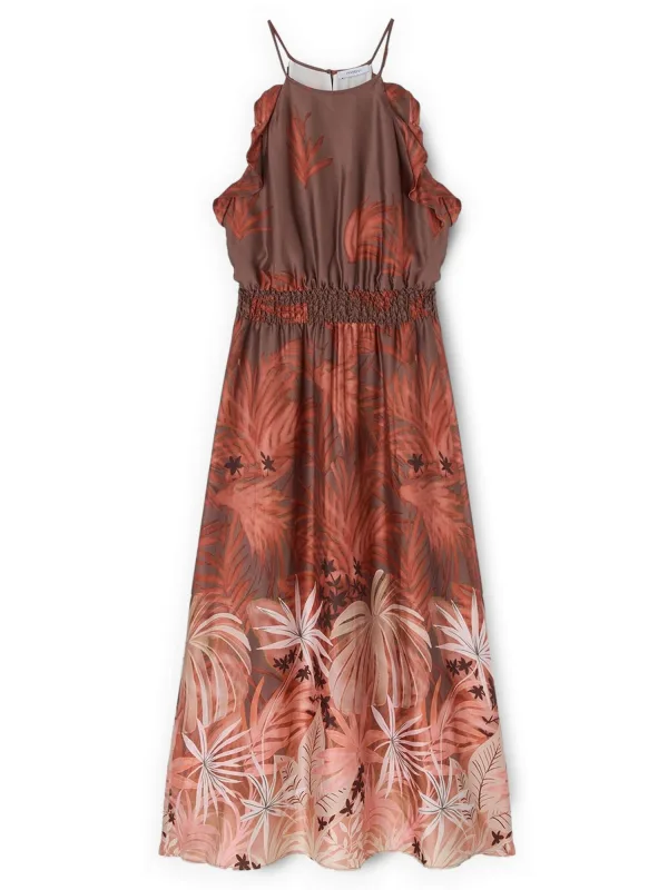 Materiaal: Viscose; Halstype: Overhemdkraag (klassiek); Motief: Bloemenprint; Soort bandjes: Haltermodel; Lengte: Lang/maxi; Pasvorm: Normale pasvorm; Armlengte: Mouwloos