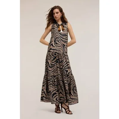 Motivi Long Printed Dress With Flounces Brown Prijzen