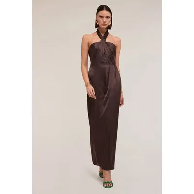 Motivi Shiny Satin Halterneck Dress Brown