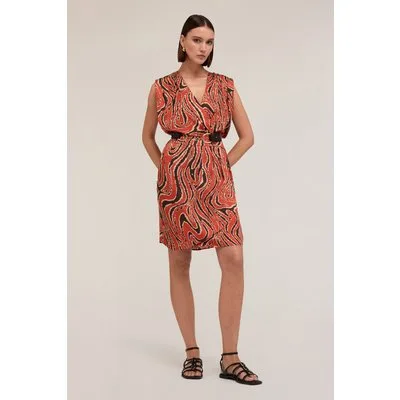 Motivi Short Satin Crossover Dress With Print Orange Prijzen