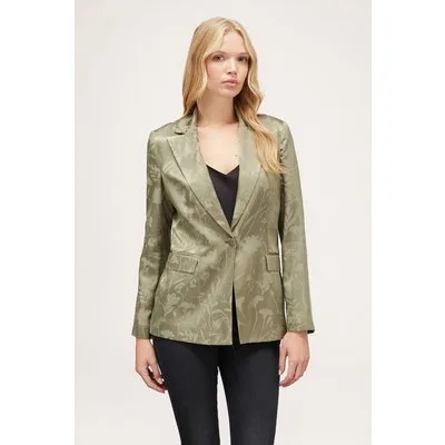Motivi Single-breasted Jacquard Satin Jacket Green