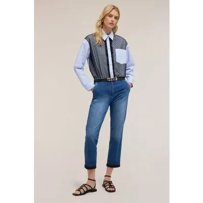 Motivi Striped Shirt With Plumetis Tulle Light Blue