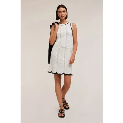 Motivi Wavy Stitch Knit Dress White