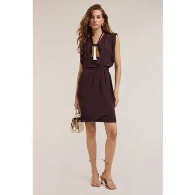 Motivi Wrap Dress In Viscose Brown
