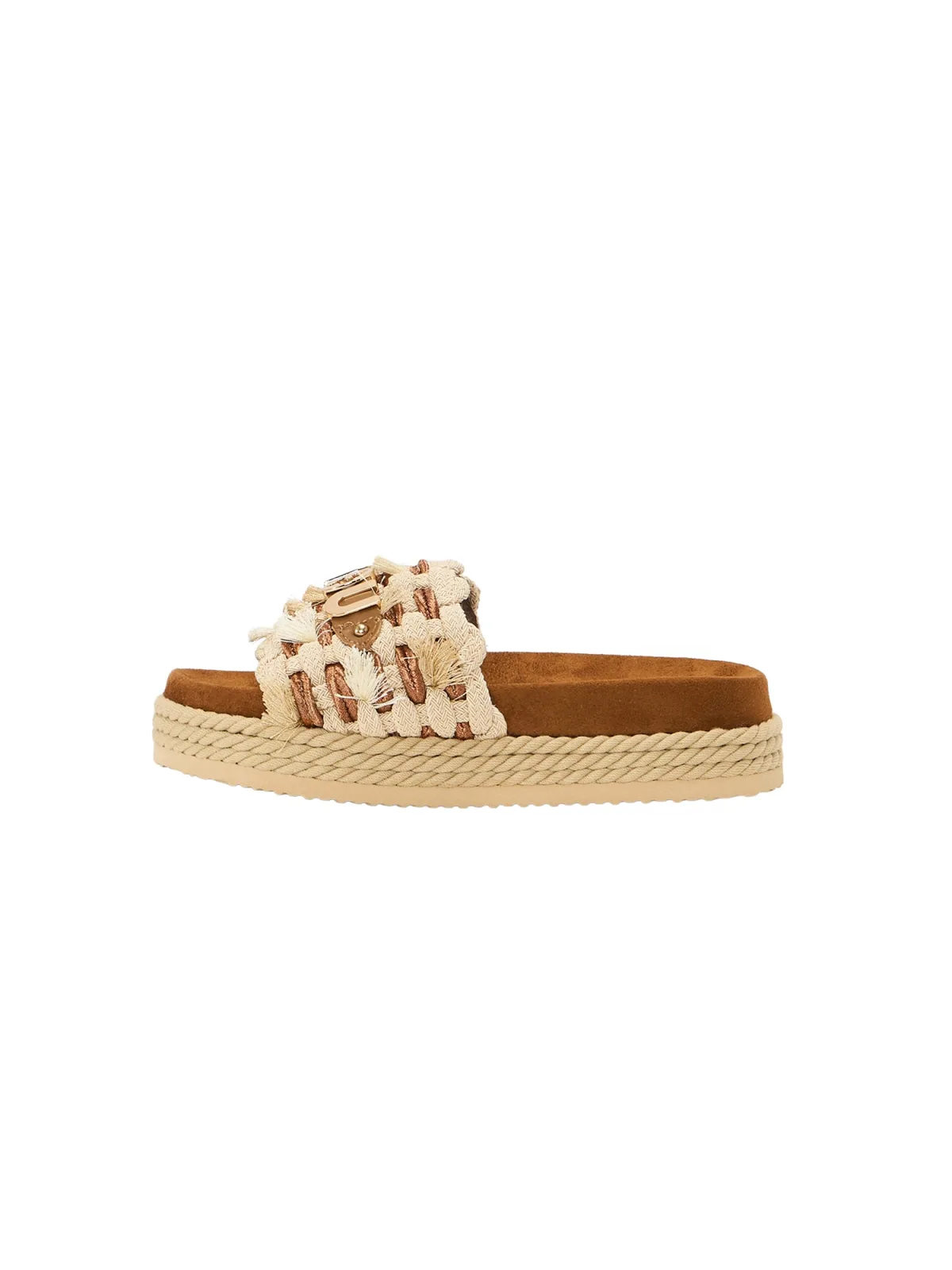Design: Anatomisch gevormd voetbed, Hak/zool met raffia-look; Type sluiting: Slip; Plateau: Met plateau; Materiaal: Textiel; Schoenneus: Open toe; Extra's: Gevlochten structuur, Label plaatje; Hakhoogte: Platte hak (0-3 cm)