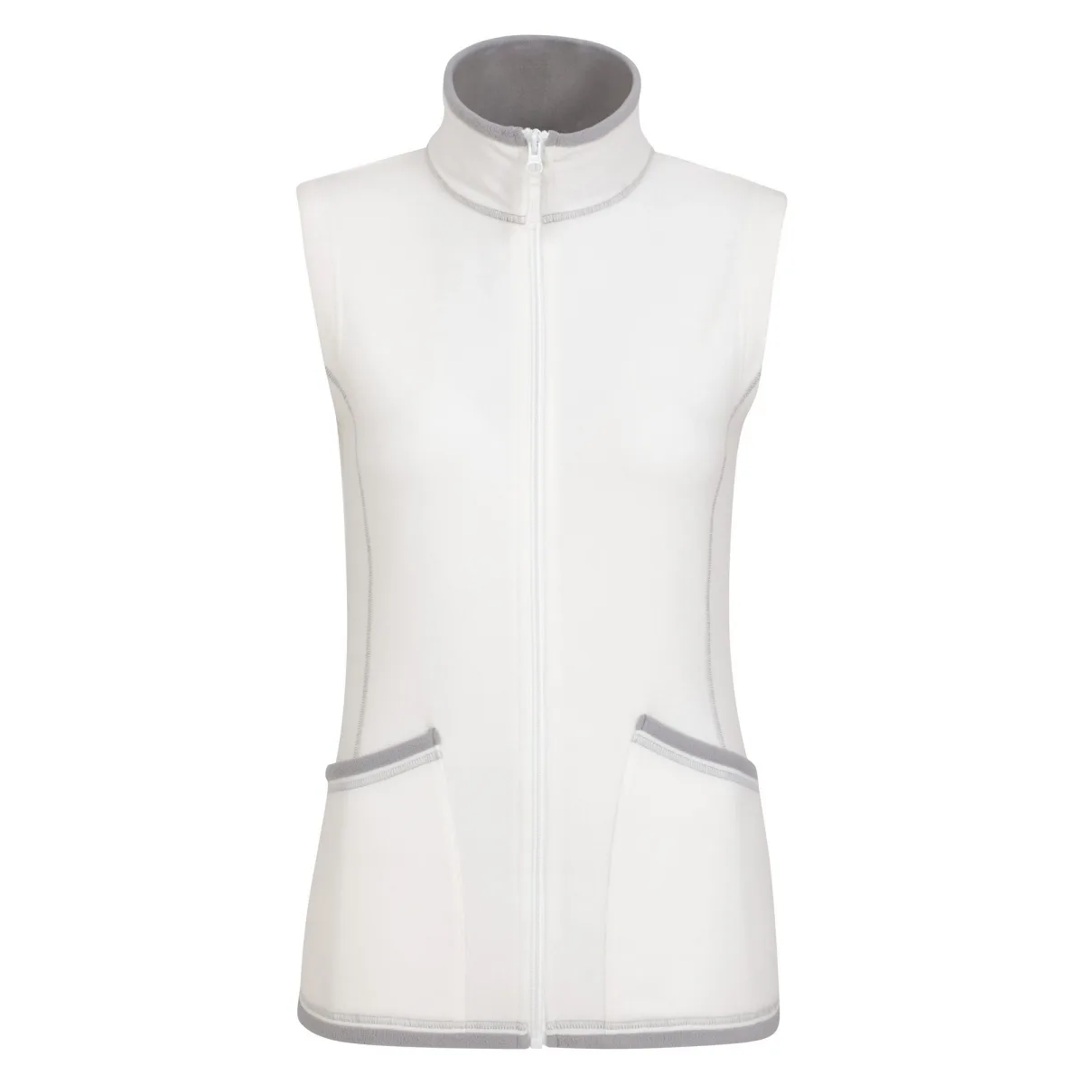 Materiaal: 100% polyester. Stof: Microfleece. Ontwerp: Contrasterende details, Effen. Stoftechnologie: Ademend, Lichtgewicht. Mouwtype: Mouwloos. Halslijn: Staande Kraag. Zakken: 2 Voorzakken. Bevestiging: Volledige ritssluiting.
