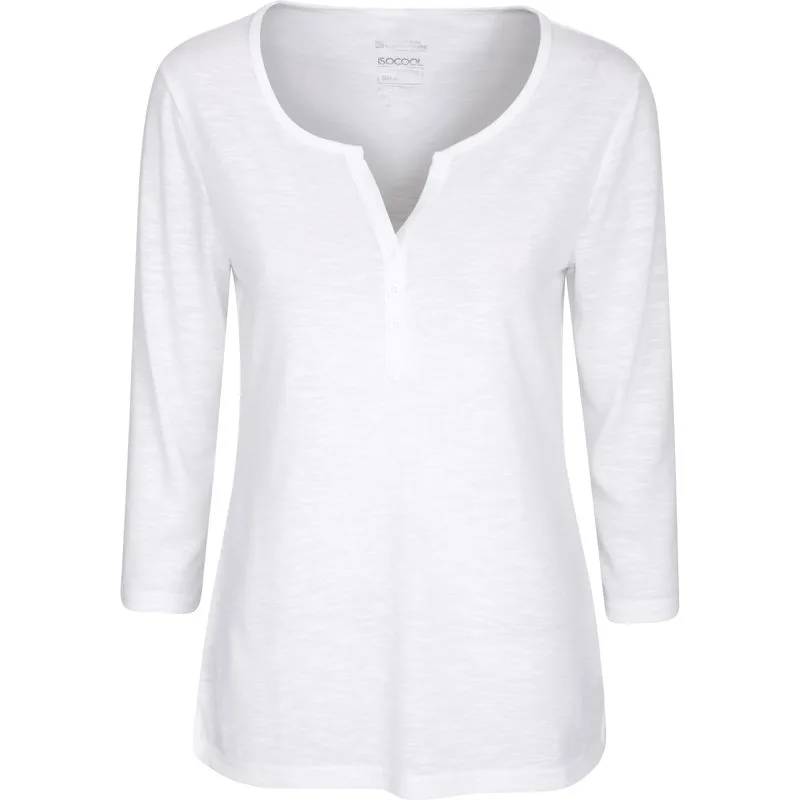 100% Polyester. Ontwerp: Textuur. Mouwtype: 3/4 mouw. Hals: Henley. Stof Technologie: Ademend, Lichtgewicht, Vochtafvoerend, Sneldrogend. 3 knopenlijst. Zonneschatting: UPF 50+.
