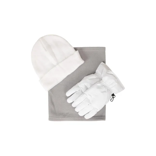 Stof: Fleece, Gebreid, Zacht Aanrakend. Inhoud: muts, handschoenen, neklap. Stoftechnologie: isolerend, waterbestendig. Ontwerp: Gewoon, geribbeld.