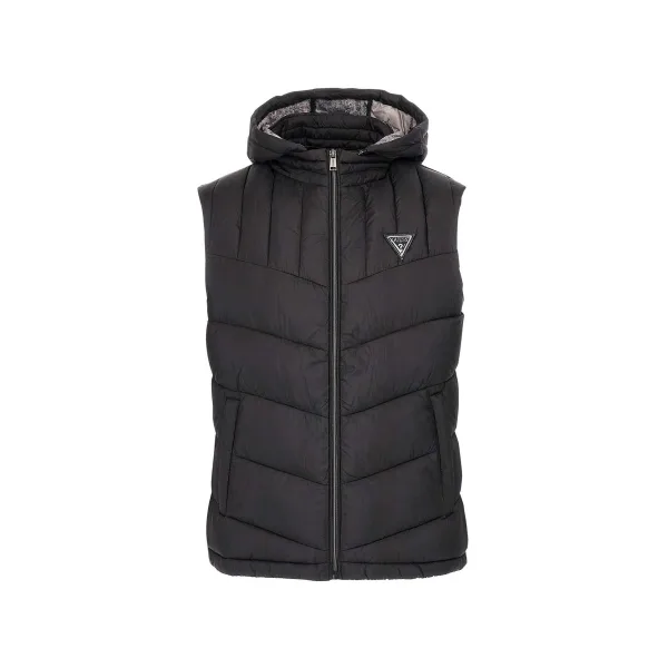 Mouwloos Guess G-Force vest voor heren, zwart polyester. Authentiek Guess kledingstuk - streetwear/sportswear design van Guess - Guess voor heren, modieus en perfect voor dagelijks gebruik - het zwarte mouwloze vest van Guess is een perfecte aanvulling op je garderobe - comfortabel polyester materiaal - klassiek - G-Force -