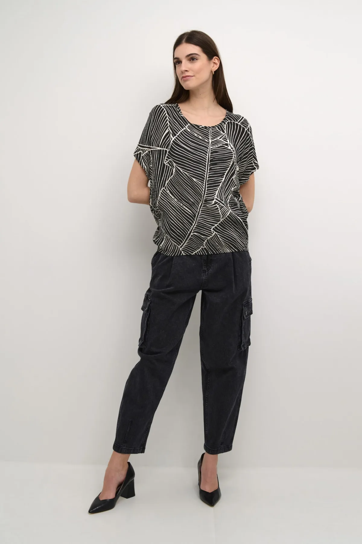 Mouwloos shirt Loose fit Black/Turtledove Leaf Print