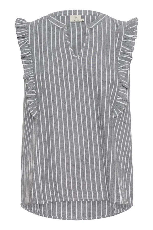 Mouwloos shirt Regular fit Black Melange/White Stripe Prijzen