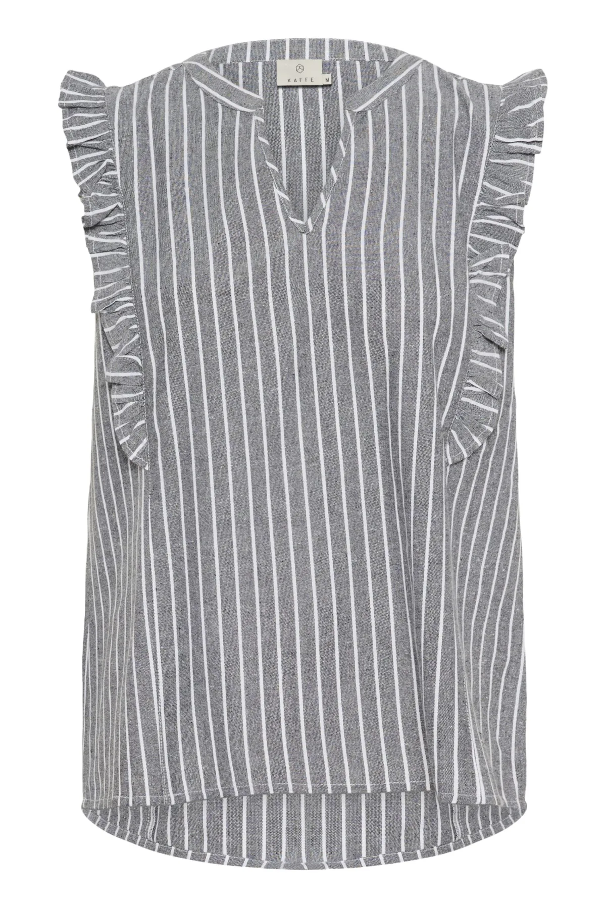 Mouwloos shirt Regular fit Black Melange/White Stripe