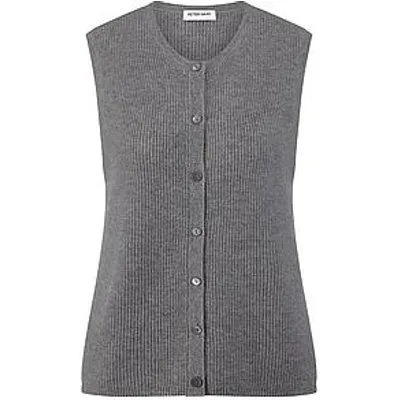Mouwloos vest van PETER HAHN met ronde hals. Dit korte it-piece is perfect voor outfits in laagjes-look en onder een blazer. Van hoogwaardig tricot met gerstekorrelstructuur en kleine parelmoeren knopen aan de knopenlijst. 70% scheerwol, 30% kasjmier. Voor het aandeel kasjmier van dit mouwloze vest gebruiken wij kasjmierwol die gecertificeerd is volgens The Good Cashmere Standard® by AbTF. Lengte ca. 56 cm. Machinewasbaar. speciale fijnwas tot 30°. chloorbleken niet mogelijk. koud strijken. chemische reiniging, veilig. drogen in de droger niet mogelijk. 36, 38, 40, 42, 44, 46, 48