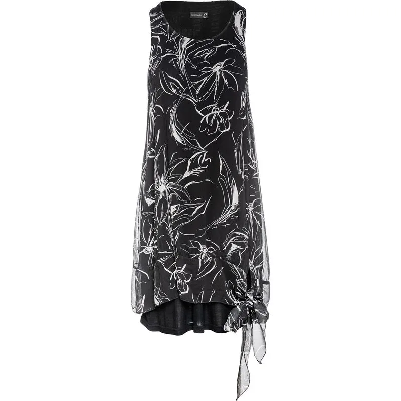 Mouwloze dubbellaagse jurk in zwart en wit Prijzen