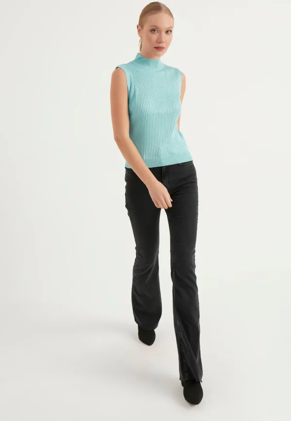 "Licht en stijlvol: mouwloze gebreide blouse", die lichtheid en elegantie combineert, is onmisbaar voor warme dagen. De fijne gebreide textuur zorgt voor luchtdoorlaatbaarheid van de blouse, houdt je koel en voegt elegantie toe aan je stijl. Terwijl het mouwloze ontwerp je vrij laat bewegen, benadrukt het je elegantie met zijn moderne snit. Deze blouse is een kandidaat om een van de onmisbare stukken van je garderobe te zijn, waarmee je je combinaties kunt verrijken met verschillende kleuropties. Toon uw stijl op zomerdagen met de "Licht en stijlvol: mouwloze gebreide blouse", die degenen zal plezieren die comfort willen ervaren zonder concessies te doen aan elegantie.
