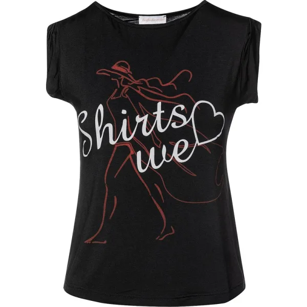 Prachtig ontworpen met de 'Shirts We ♥'-print. Deze opvallende top zul je met plezier dragen. De armgaten met omslag zorgen voor een relaxte vibe, terwijl de prachtige zachte stof een exclusiviteit uitstraalt die niet onopgemerkt zal blijven. Met een discreet 'Shirts We ♥'-logo in stras aan de voorkant, links onderaan. Ronde hals. Mouwloos. Armgaten met omslag. Het afgebeelde model is 178 cm en draagt maat 10 (VK)