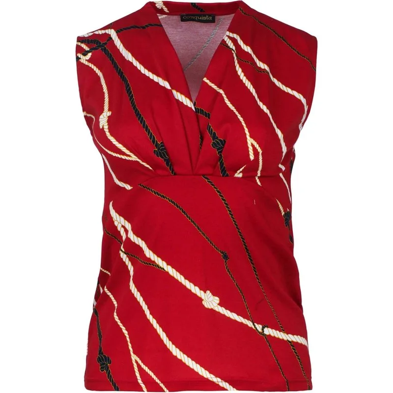 Mouwloze top van rood katoenjersey met touwprint Prijzen