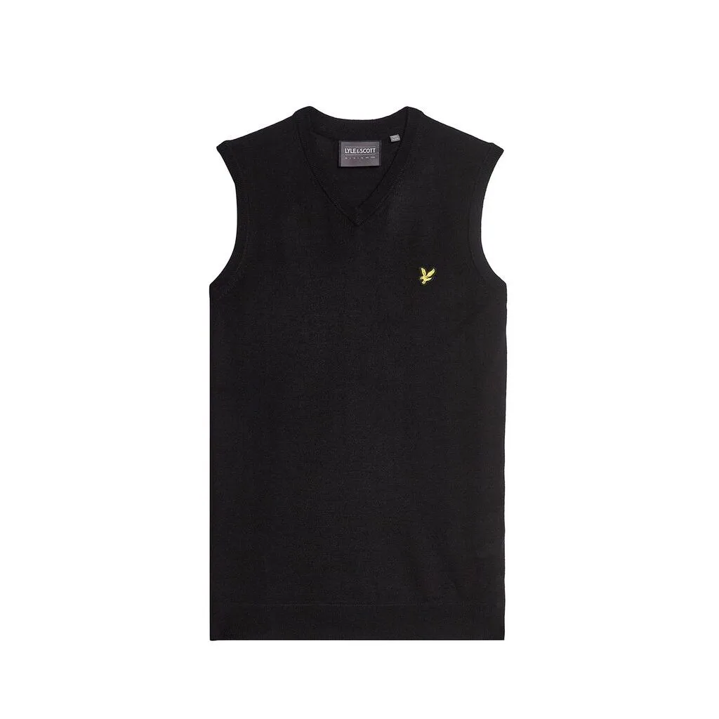 Lyle & Scott Merino Blend Knitted V-neck Vest Jet Black
