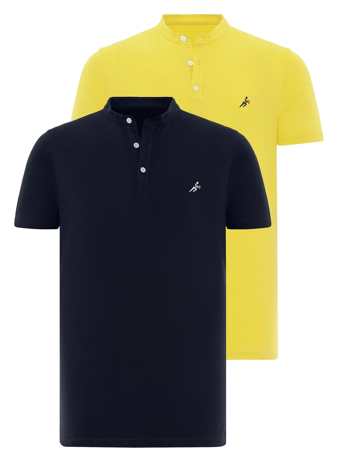 Design: Placket, Recht model; Type sluiting: Knoopsluiting; Materiaal: Katoen; Halstype: Opstaande kraag; Motief: Effen; Extra's: Label borduurwerk, Piqué; Pasvorm: Normale pasvorm; Aantal: 2 Pack; Armlengte: Kwartmouw; Lengte: Normale lengte