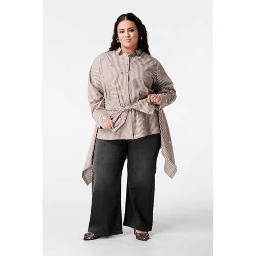 Deze gestreepte blouse met pailletten van MS Mode geeft je outfit direct meer karakter. Het lange, ruimvallende model met krijtstreep voelt luchtig aan door het materiaal van 100% katoen. De subtiele pailletten in bloemvorm op de voorkant zorgen voor een speels accent zonder dat het te opvallend wordt. Geschikt voor dagen waarop je iets extra’s wilt, met behoud van gemak en draagcomfort.Details die opvallen in het dagelijks leven Gestreept patroon met krijtstreep voor een rustige, frisse uitstraling Pailletten in bloemvorm op de voorkant voor een speels detail Oversized, ruimvallende pasvorm die soepel langs het lichaam valt Lange mouwen met rechte mouwinzet voor een ontspannen silhouet Klassieke kraag en knoopsluiting, geschikt voor zowel werk als casual momenten Lengte circa 85 cm in maat 64, praktisch als je graag iets meer bedekking wilt Gemaakt van 100% katoen, geschikt om te dragen op warme en koelere dagen Machinewasbaar, zodat de blouse makkelijk in je wasroutine pastVeelzijdig te stylen, van werkdag tot weekendDraag de blouse los over een strakke jeans voor een ontspannen look, of stop hem deels in een nette pantalon voor een meer geklede outfit. De ruimvallende vorm maakt het ook geschikt om te dragen over een legging of smalle broek.MS Mode, ontworpen met aandacht voor vorm en pasvormMS Mode richt zich op kleding die is afgestemd op verschillende vormen en maten. Met deze blouse kies je voor een doordacht ontwerp dat stijl en gebruiksgemak combineert.Deze blouse geeft je garderobe op een eenvoudige manier meer variatie.