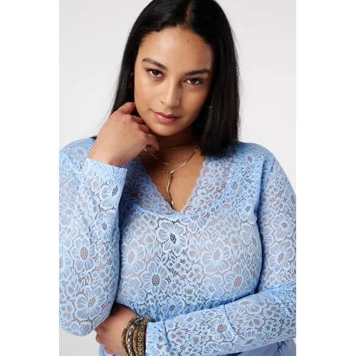 Maak je dagelijkse outfits compleet met deze kanten blouse van MS Mode. De top is gemaakt van fijn bloemenkant, heeft een v-hals en lange mouwen, en volgt je silhouet dankzij de aansluitende pasvorm. Door de toevoeging van stretch beweegt de stof soepel met je mee, zodat je de hele dag comfortabel gekleed gaat.Kanten top met bloemendessin Gemaakt van 91% polyamide en 9% elastaan voor een soepele, rekbare stof Bloemenkant over het hele oppervlak met een fijn dessin voor een verzorgd geheel V-hals in combinatie met een klassieke kraag voor een moderne twist Lange, rechte mouwen die netjes langs de armen vallen Aansluitende pasvorm die je vormen volgt zonder te knellen Lengte van 66 cm in maat L, valt op de heup voor een geaccentueerd silhouet Knoopsluiting aan de voorkant voor gemakkelijk aan- en uittrekken Praktisch in onderhoud door machinewasbaar materiaalGeschikt voor verschillende momenten op de dagDeze kanten top leent zich goed voor uiteenlopende momenten. Naar kantoor combineer je de blouse eenvoudig met een nette broek of rok. Voor een diner of speciale gelegenheid komt het bloemenkant goed tot uiting met een donkere jeans of een rok. De aansluitende snit en het rustige kleurgebruik zorgen steeds voor een verzorgde outfit.MS Mode, specialist in damesmodeMS Mode ontwerpt kleding met aandacht voor vrouwelijke vormen en dagelijks draaggemak. Materialen worden gekozen op comfort en pasvorm, zodat je prettig gekleed gaat in wat je draagt. Deze kanten blouse past binnen die visie en biedt een betrouwbare basis voor veel verschillende outfits.Een praktische top die je garderobe op een comfortabele en gemakkelijk te combineren manier compleet maakt.