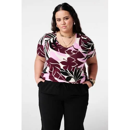 MS Mode gebloemde T-shirt donkerrood Prijzen