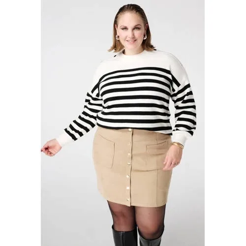Deze trui van MS Mode heeft lange rechte mouwen en een klassieke kraag Met een streepprint en knoopdetail op de voorkant draag je deze trui naar werk of in je vrije tijd