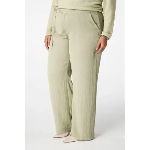Fris, luchtig en toch gekleed, dat is deze MS Mode wide leg broek in licht mint. De broek heeft een mooie wijde pijp die soepel langs je benen valt. De elastische taille en het overslag strikceintuur zorgen voor een comfortabele pasvorm rond je middel en geven een verfijnd accent aan je outfit. Door de lange lengte is deze broek geschikt voor verschillende gelegenheden, van werk tot een ontspannen dagje uit.Details die het verschil maken Wide leg model met lange pijpen voor een elegante, losse fit Elastieke taille met overslag strikceintuur voor een comfortabele en verstelbare taille Regular waist, waardoor de broek prettig op de heupen valt Gemaakt van 64% lyocell, 30% viscose en 6% elastaan, wat zorgt voor een zachte, soepele stof met lichte stretch Licht mint effen kleur die makkelijk te combineren is Haaksluiting aan de voorkant voor een nette afwerking Zakken voor, sierzakken en zakken achter voor een verzorgde look Binnenbeenlengte: 81 cm in maat 46 Geschikt voor machinewas, eenvoudig in onderhoudLuchtige broek voor alledaagse momentenDe lichte stof en wijde pijpen maken deze broek ideaal voor dagen waarop je je vrij wilt bewegen. Combineer met een eenvoudig T-shirt of een nette blouse en je hebt in korte tijd een complete look die zowel ontspannen als verzorgd oogt.MS Mode voor pasvorm en stijlMS Mode richt zich op modieuze kleding met aandacht voor pasvorm. De broeken zijn ontworpen zodat ze prettig dragen en mooi om het lichaam vallen, met doordachte details in taille, lengte en materiaalkeuze.Een comfortabele, luchtige broek die je garderobe op een rustige en stijlvolle manier aanvult.