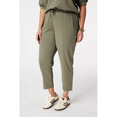Op zoek naar een broek die casual oogt en toch netjes staat? Deze kaki MS Mode dames broek combineert een sportieve uitstraling met een moderne, taps toelopende pasvorm. De elastische taille met strikkoord zorgt voor gemak bij het aantrekken en een aansluitende pasvorm rond je middel. De slim fit pijpen volgen de lijnen van je benen, terwijl de stof een subtiel wafelpatroon heeft dat de effen kleur extra diepte geeft.Details die je elke dag draagt Elastische tailleband met strikkoord voor een comfortabele, verstelbare pasvorm Ruimvallend model rond de heupen met slim fit pijpen voor een slank silhouet Lange lengte met een binnenbeenlengte van 68 cm in maat 46 Gemaakt van 97% polyester en 3% elastaan, waardoor de stof licht en soepel valt Voorzien van zakken voor, sierzakken en zakken achter voor een casual uitstraling Effen kaki kleur, makkelijk te combineren met basics en prints Machinewasbaar, praktisch in verzorging Bijpassende top verkrijgbaar voor een complete set in dezelfde stijlVan thuisdag tot casual buiten de deurDeze broek is geschikt voor dagen waarop je veel bewegingsruimte wilt in je kleding en er tegelijk verzorgd uit wilt zien. Combineer hem met de bijpassende top voor een coördinate set, of draag hem met een T-shirt en sneakers voor een rustige, casual look.MS Mode: stijlvol en doordachtMS Mode ontwerpt kleding die inspeelt op het dagelijks leven. Met aandacht voor pasvorm, draaggemak en moderne details biedt het merk kledingstukken die goed aansluiten bij verschillende momenten op de dag.Een praktische basisbroek die geschikt is voor uiteenlopende activiteiten.