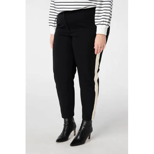 MS Mode slim regular waist gestreepte casual broek zwart Prijzen